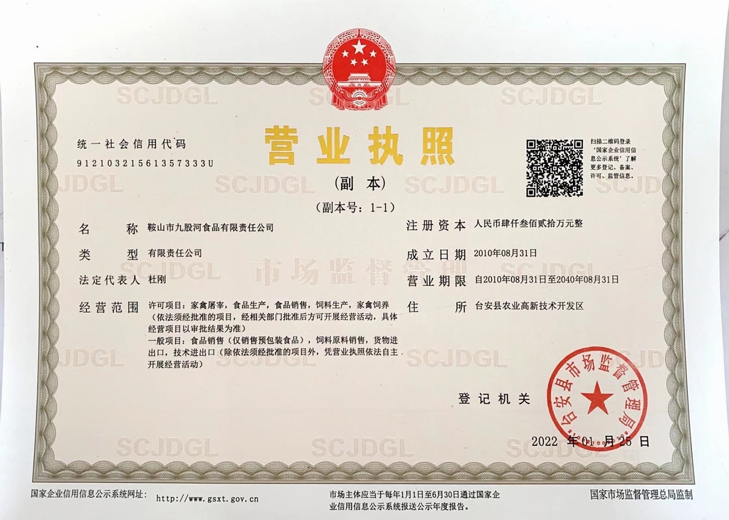 1997年丨九股河誕生于遼寧臺安,成立臺安縣九股河農(nóng)業(yè)發(fā)展有限公司2003年丨九股河走進(jìn)錦州市,在凌海成立凌海九股河食品有限公司2008年丨成立凌海九股河飼料有限公司2010年丨九股河與禾豐合作后,成立鞍山市九股河食品有限責(zé)任公司,從此,禾豐九股河走進(jìn)了高速發(fā)展之路2011年丨繼續(xù)在遼西闊步,成立葫蘆島九股河食品有限公司同年,臺安縣九股河農(nóng)業(yè)發(fā)展有限公司養(yǎng)殖部成立,按下規(guī)?;\養(yǎng)小區(qū)建設(shè)的快進(jìn)鍵2